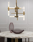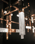 A collection of “jewel” lamps characterized by the combination of rectangular brass tubes and slanted cubes in engraved crystal, with two types of workmanship. The apparently random juxtaposition (hence the name “Mikado”) in fact follow a precise and balanced scheme. The LED sources, inserted in the tubes so as to showcase the preciousness of the crystal, make Mikado a high-performance decorative product that is compatible with home automation systems.